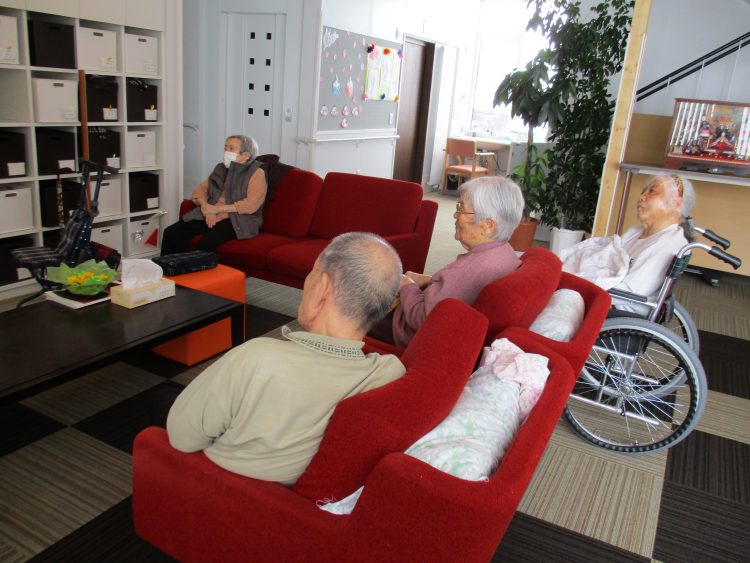 昨日の天気とは、360度変わり吹雪の天気でしたね。こんな日はみんなで、歌版組のDVD鑑賞をしました。