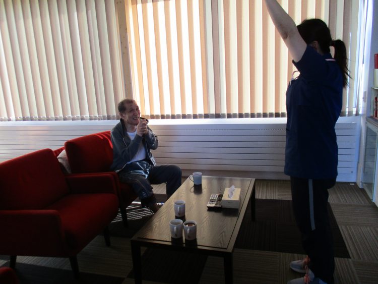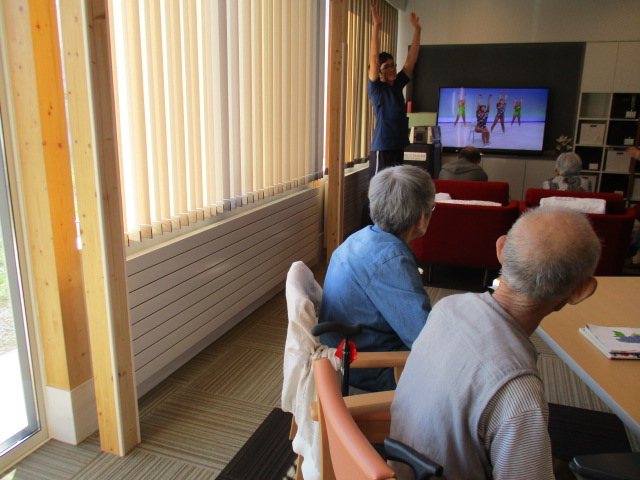本日は、「リンゴの唄」等の歌に合わせて、体操を行いました。