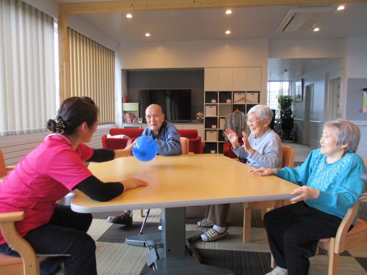 ブログをご覧の皆様こんにちは!^-^!今日は職員も加わり風船バレーを行いました^-^!始めは風船を2つ使用してみました。「何処を見ていいかわからねーじゃー」・「...