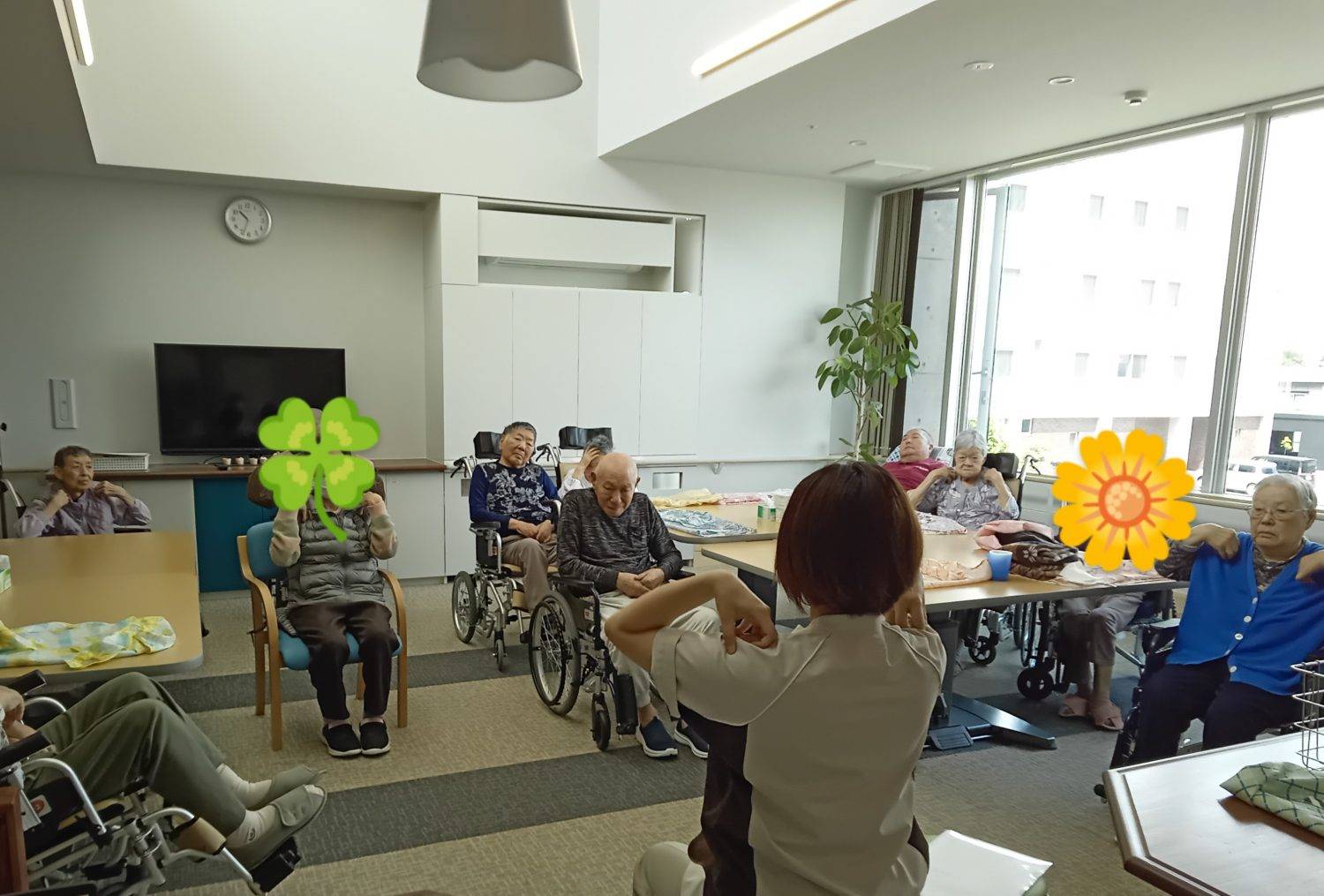 人数を分けて行ったので、全員ではありませんが皆さん参加され職員の真似をして楽しそう...