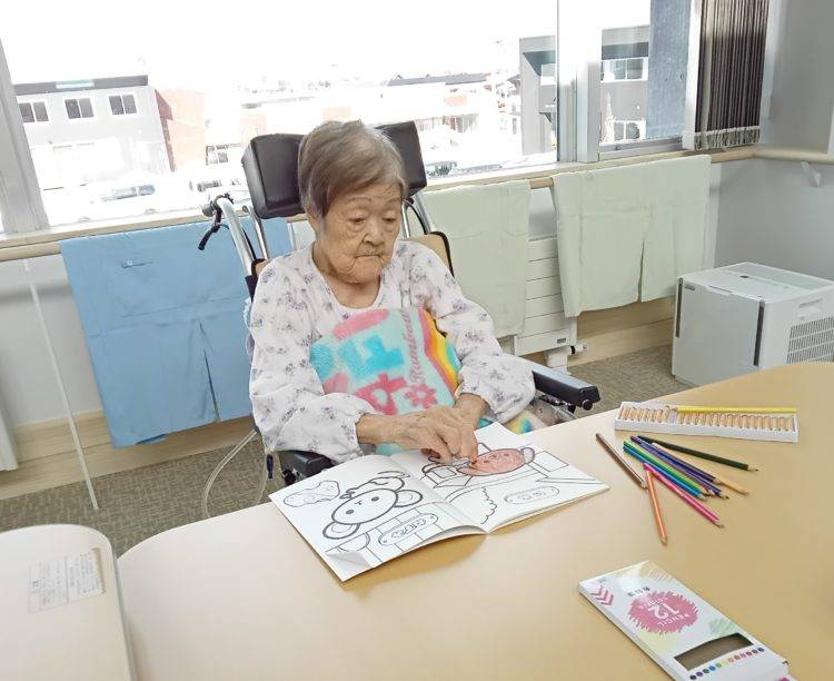 1階の様子です。午後にボールを使って手の運動を行いました。