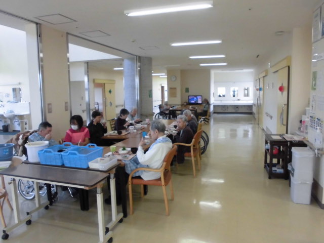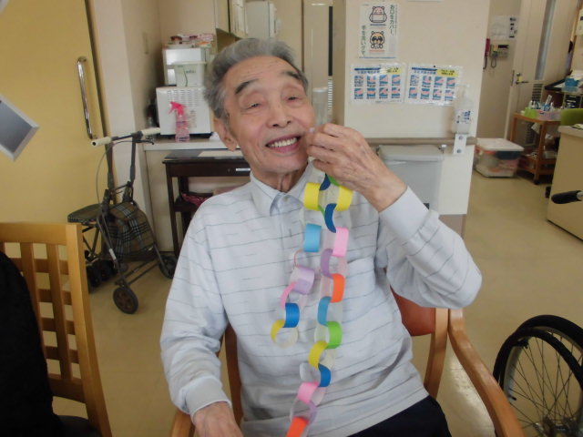 今日は、折り紙で、ネックレスを作りました。丸い輪をつくり、一生懸命につなげていきました。一人の方が頑張っていますと、他の方も負けずに頑張って...