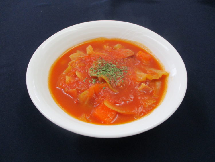 <お品書き> おさつクロワッサン、ミネストローネ、里芋と鶏肉の味噌煮、蒸しシュウマイ、野沢菜漬、りんごゼリー エネルギー:537㎉ たんぱく質:1... 詳しく見る