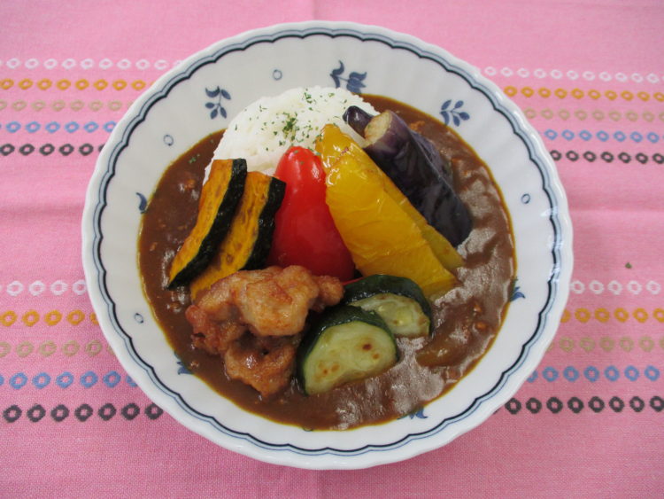 <お品書き> ご飯、あさりスープ、夏野菜カレー、キャベツと竹輪の辛子和え、福神漬、パイン缶 エネルギー:526㎉ たんぱく質:15.8g 食塩 ... 詳しく見る