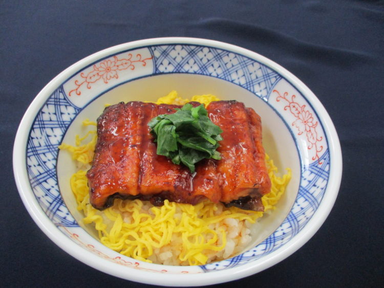 <お品書き> うな丼、焼き豆腐とねぎのみそ汁、ふきのそぼろ炒め、五目ひじき煮、白かぶ漬、杏仁豆腐 エネルギー:583㎉ たんぱく質:27.3g ... 詳しく見る