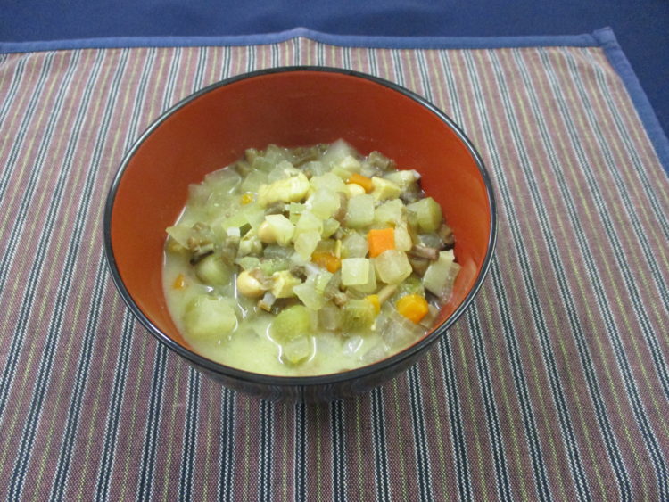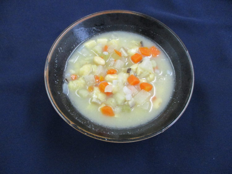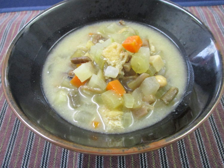 ご飯、けの汁、あじの香草パン粉焼き、チンゲン菜とあさりのソテー、胡瓜とくらげの中華和え、金時豆、白かぶ漬