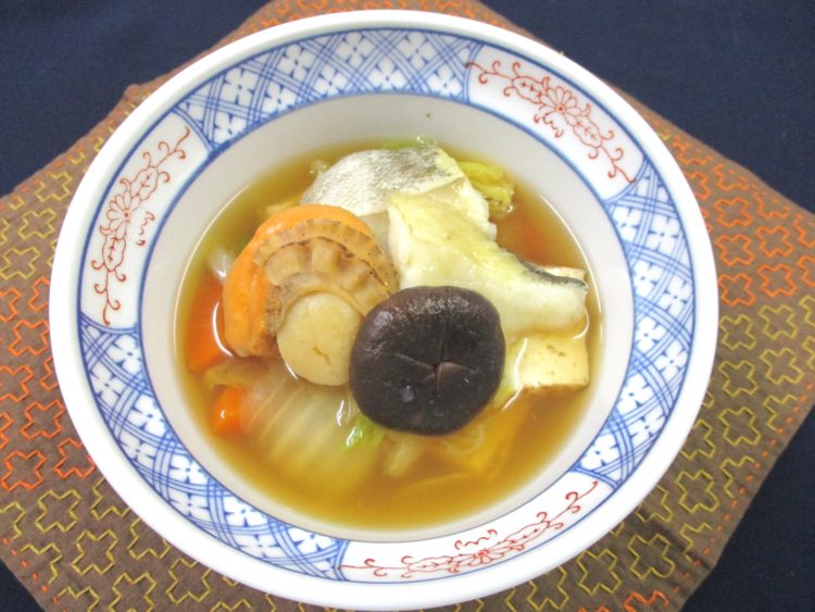 <お品書き> ご飯、石狩鍋、レンコンのはさみ揚げ、ほうれん草のごま和え、いんげんと豚肉の炒め物、 味きゅうり漬、杏仁豆腐 エネルギー:565㎉ ... 詳しく見る