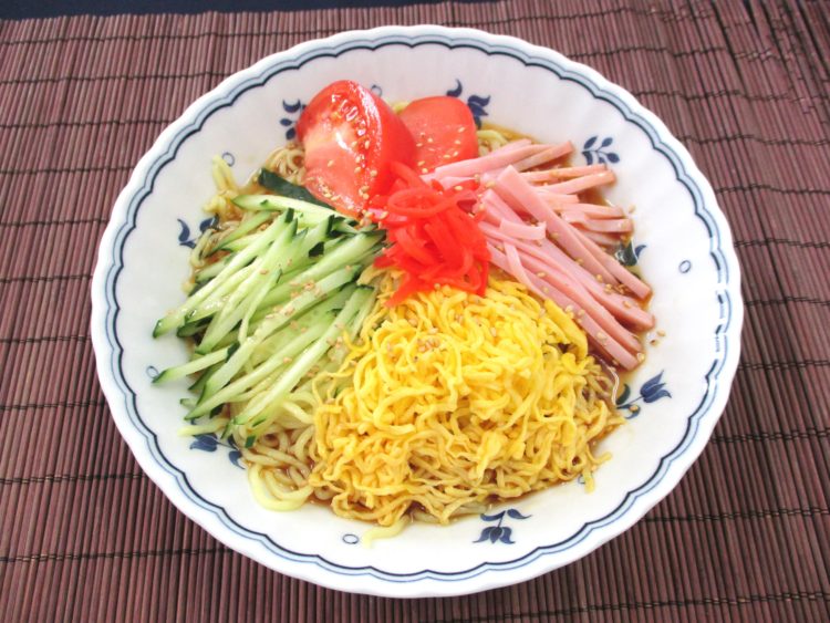 <お品書き> 冷やし中華、ブロッコリーとえびのソテー、レンコンのはさみ揚げ、白菜漬、ラムネ風ゼリー エネルギー:520㎉ たんぱく質:25.4g ... 詳しく見る