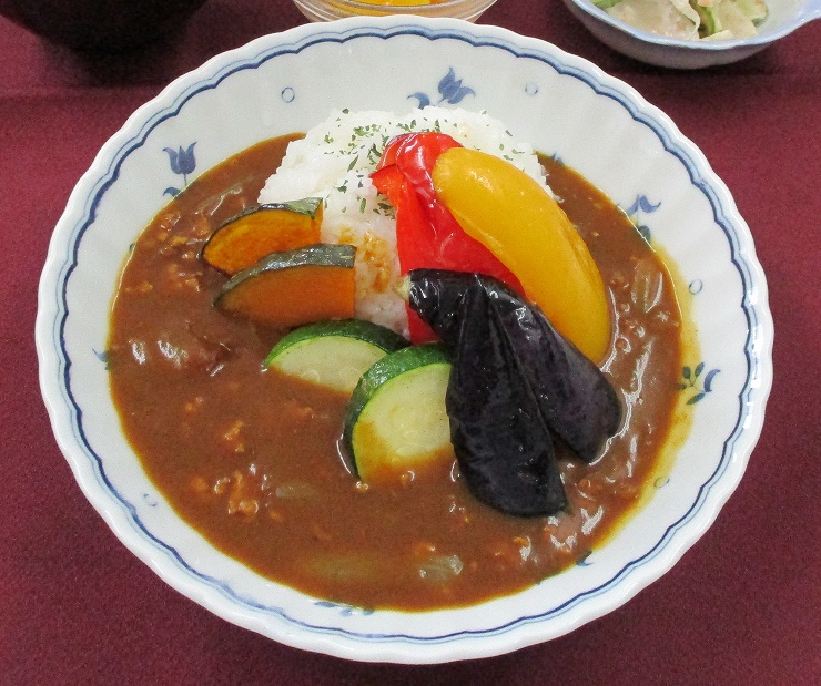 <お品書き> ご飯、あさりスープ、夏野菜カレー、アスパラとささ身のゴマサラダ、 チンゲン菜と生揚げの炒め煮、らっきょう漬、すいかゼリー エネルギー... 詳しく見る