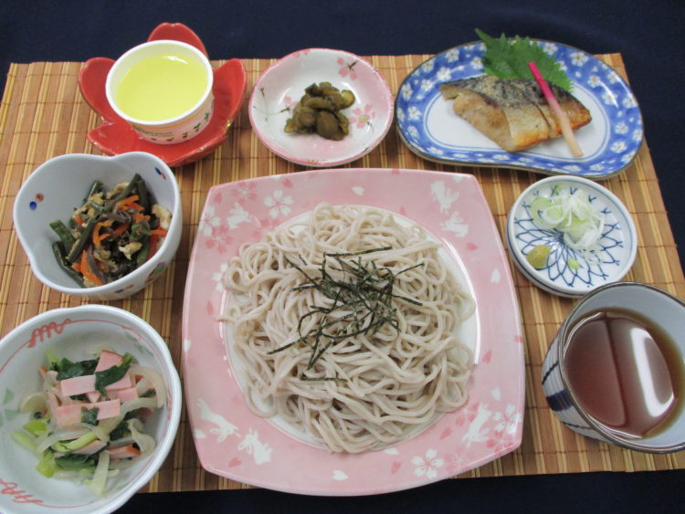 <お品書き> ざるそば、さばのごまダレ焼き、ちんげん菜とハムのソテー、わらびのお浸し、味きゅうり漬、日向夏ゼリー エネルギー:521㎉ たんぱく質... 詳しく見る