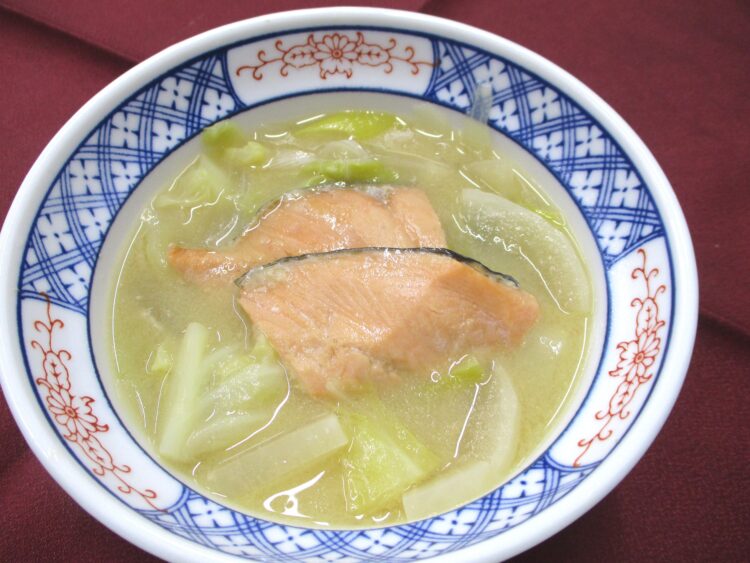 〈お品書き〉 ご飯、石狩鍋、細竹と豚肉の炒め煮、とうもろこしのつまみ揚げ、長芋漬、牛乳プリン エネルギー:573㎉ たんぱく質:28.9g 食塩... 詳しく見る