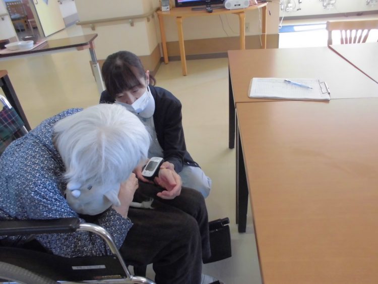 毎朝お客様の体温測定と血圧測定を実施し、体調確認をしています。お客様とコミュニケーションを取りながらの測定は、いつもと違うところがないかの...
