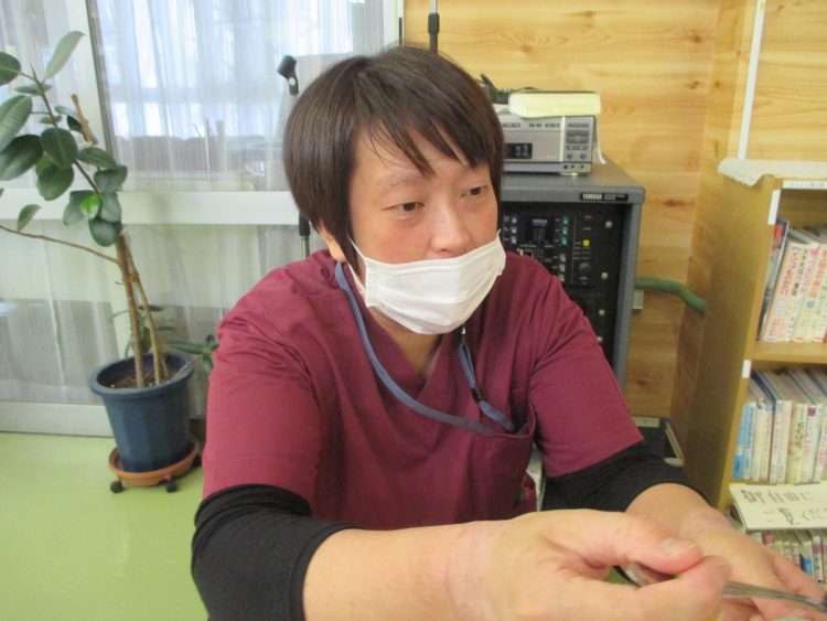 今日から育児休暇から復帰して、働いている職員です。約一年、育児休暇を取得しました。以前もショートステイで