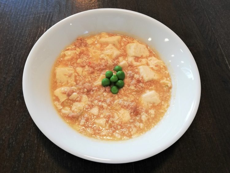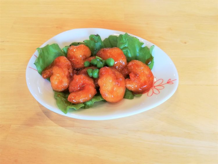 ご飯、花麩のすまし汁、白身魚のガーリックチーズ焼き、生揚げの炒め物、さつま芋のサラダ、桜大根漬け
