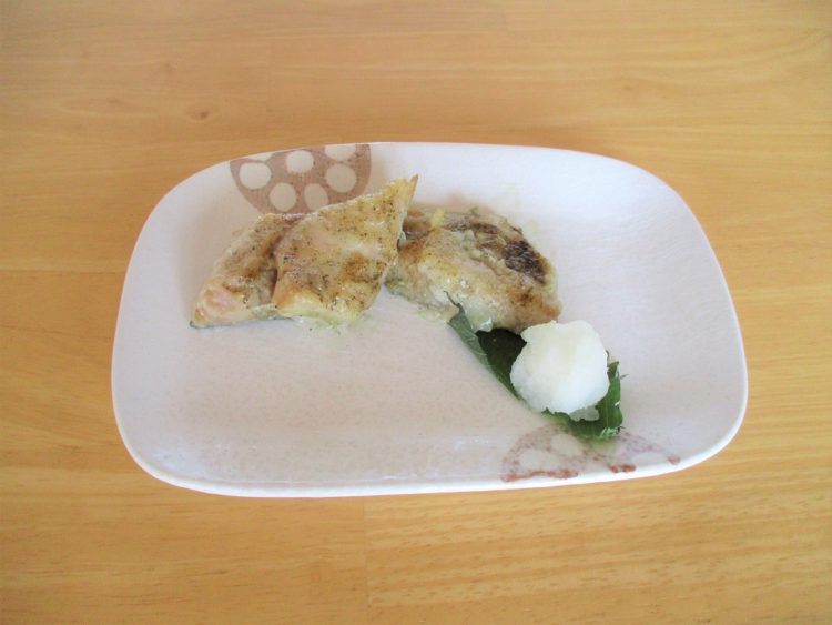ご飯、うどん汁、カレイみりん漬け焼き、なすの揚げ浸し、ひじきの煮物、ずんだ和え、