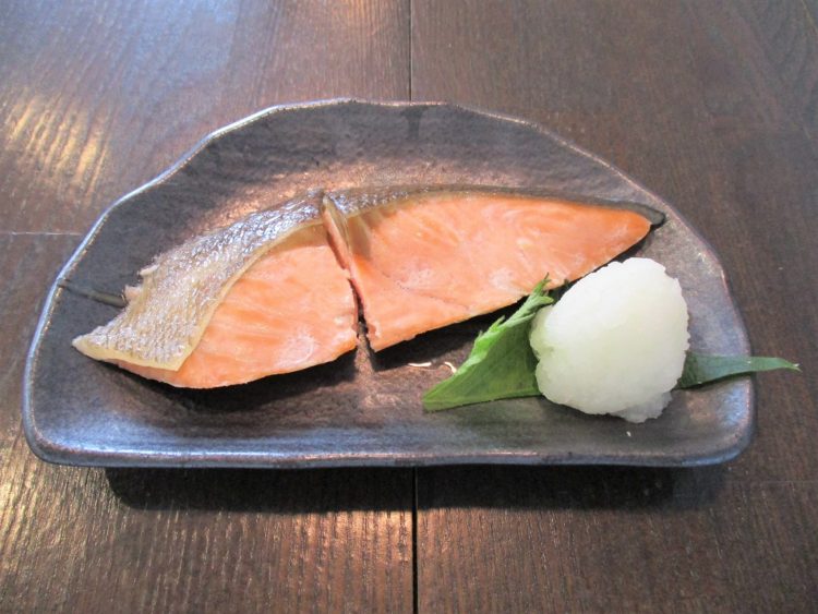ご飯、ふきのみそ汁、めばるの青じそ風味焼き、小松菜の炒め煮、炒り豆腐、さつま芋サラダ、