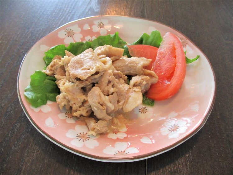 ご飯、ぜんまいのみそ汁、豚肉のピーナッツ焼き、さつま芋煮、しらすおろし和え、