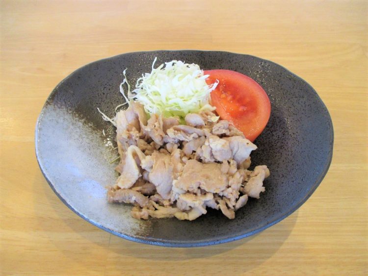 ご飯、わかめのみそ汁、ほっけみりん漬け焼き、野菜しゅうまい、ビーフン炒め煮、