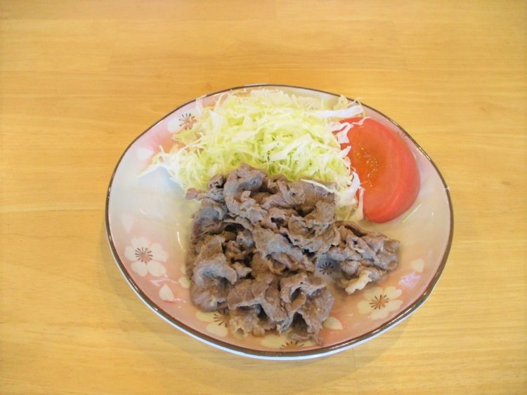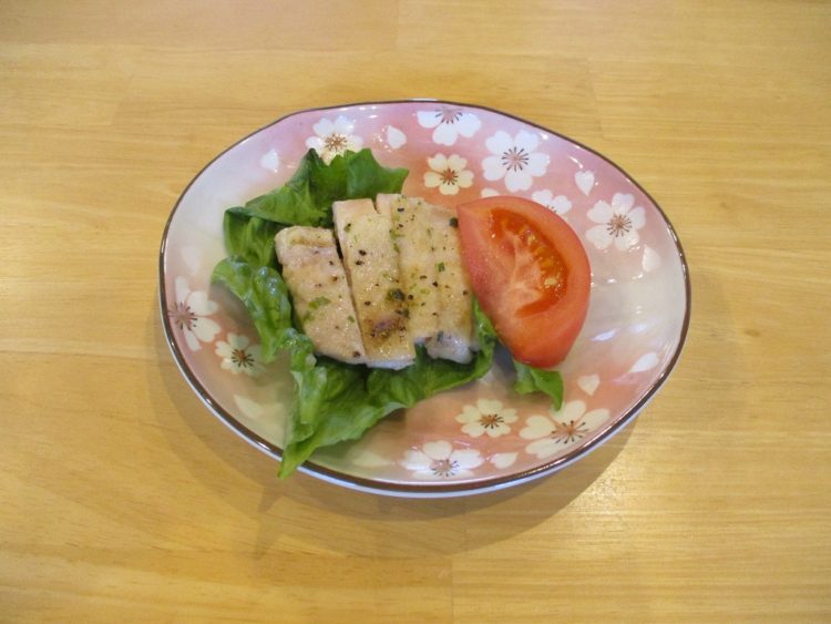 ご飯、棒麩のみそ汁、さわらのしそ風味焼き、南瓜の煮物、春雨の炒め物、オクラのごま和え、