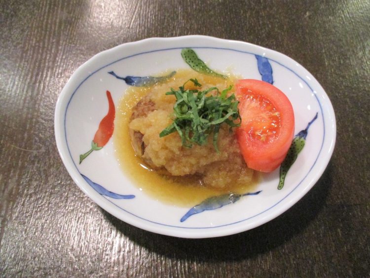 ご飯、コンソメスープ、ハンバーグおろしソース、かぶのあんかけ、青梗菜のなめ茸和え、