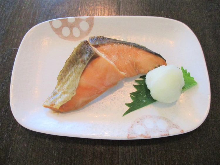 ご飯、舞茸のみそ汁、かれいのカレー風味焼き、人参の子和え、プチ丸、レタスのサラダ、
