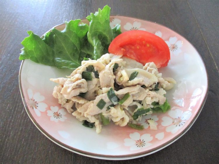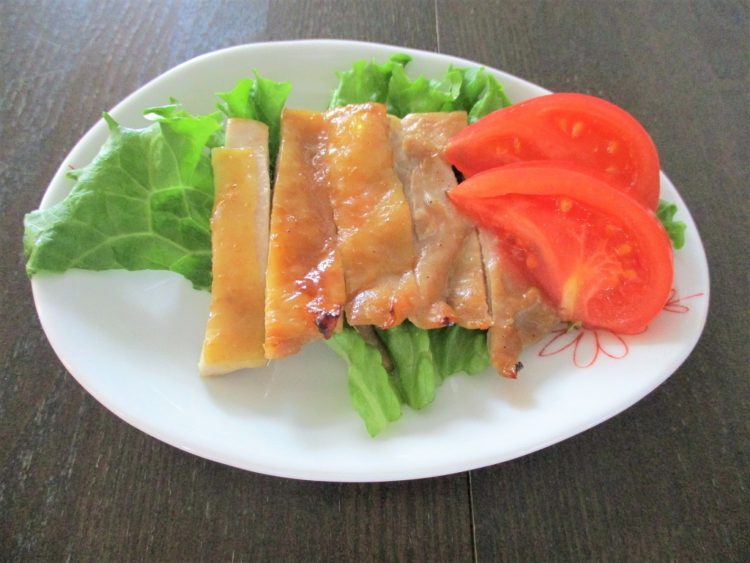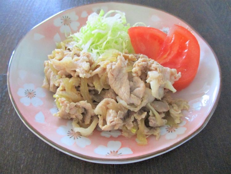 ご飯、さもだしのみそ汁、鶏肉の生姜はちみつ焼き、カリフラワーカレー炒め、春菊の白和え、