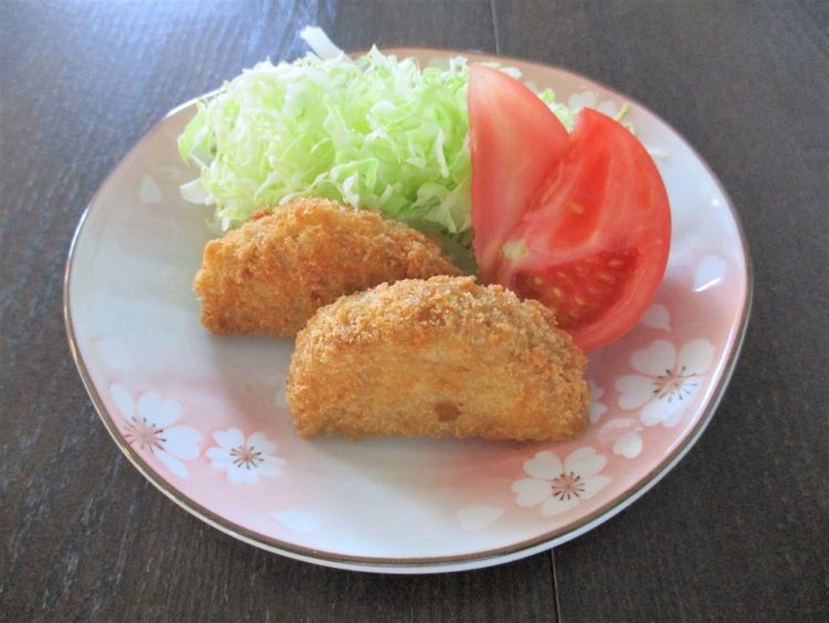 ご飯、マッシュルームスープ、チーズ入りメンチカツ、卯の花の炒り煮、長いもの梅和え、