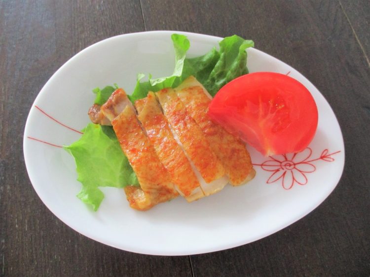 ご飯、花麩のみそ汁、鶏肉のピーナッツ焼き、かぼちゃコロッケ、もやしの炒め物、
