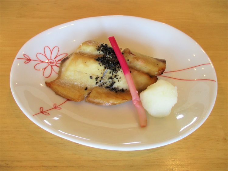 ご飯、細竹のみそ汁、かれいのカレームニエル、マカロニソテー、青梗菜の炒めもの、