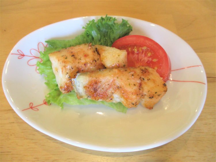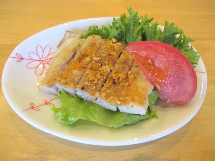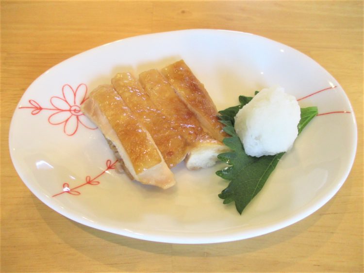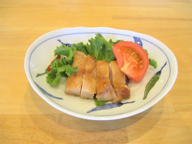 ご飯、わかめのみそ汁、鶏肉の生姜はちみつ焼き、ささげのしそ炒め、たまご豆腐、
