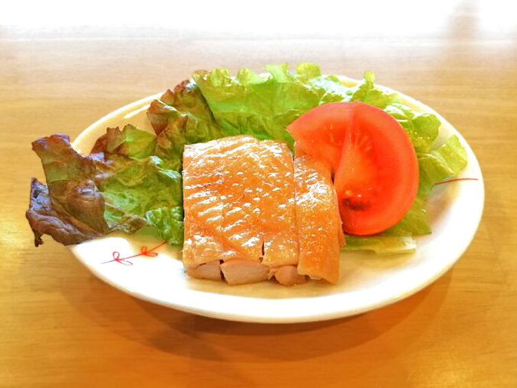 ごはん、さもだしのみそ汁、鶏肉の生姜はちみつ焼き、カリフラワーのカレー炒め、