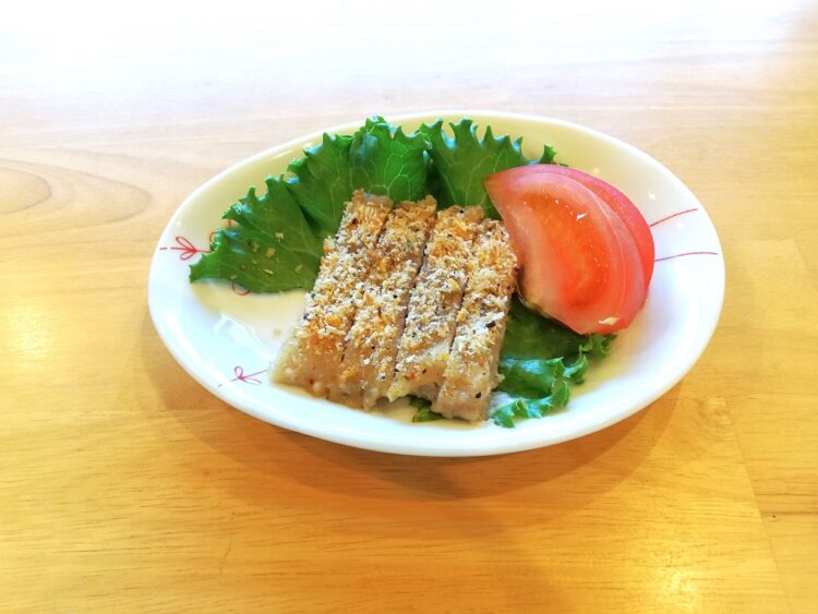 ごはん、岩のりのみそ汁、豚肉の生姜焼き、ふきの炒め物、人参とツナのサラダ、しその実漬け エネルギー:499Kcal タンパク質:21.1g 食塩... 詳しく見る