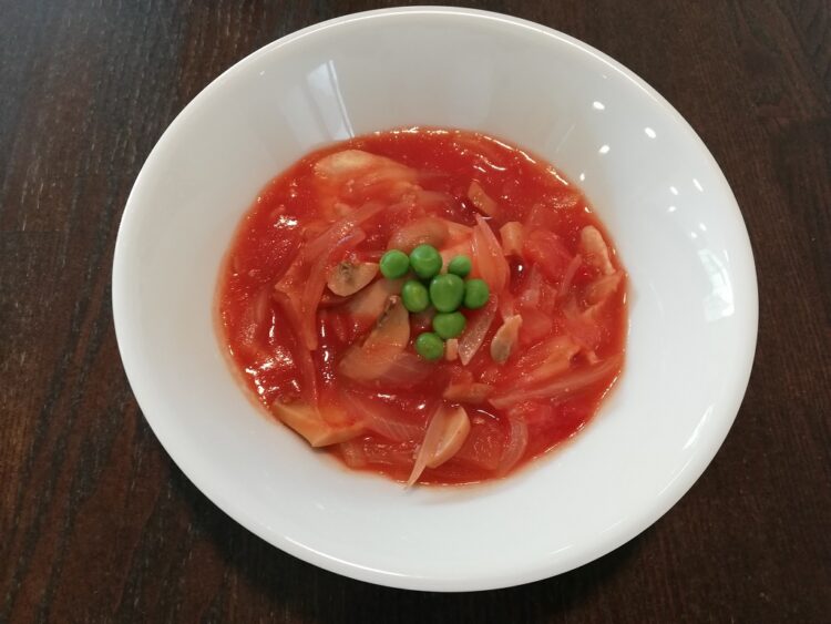 ごはん、キャベツのスープ、鶏肉のトマト煮、大根とあさりの煮物、ずんだ和え、のり佃煮 エネルギー:488Kcal タンパク質:23.5g 食塩 ... 詳しく見る