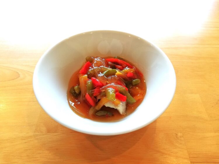 ごはん、細竹のみそ汁、さばの照り焼き、卯の花の炒り煮、胡瓜の酢の物、赤しその実漬け エネルギー:478Kcal タンパク質:20.6g 食塩 ... 詳しく見る