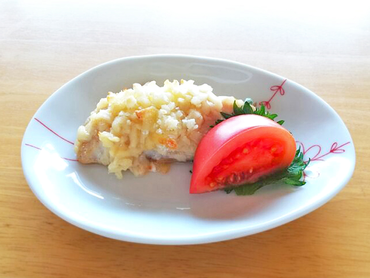 ごはん、細竹のみそ汁、かれいのカレームニエル、マカロニソテー、青梗菜の和え物、しそ昆布
