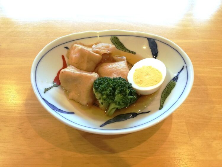 ごはん、さもだしのみそ汁、鶏肉の生姜はちみつ焼き、カリフラワーのカレー炒め、