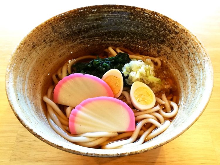 ごはん、花麩のすまし汁、カレイの中華あんかけ、南瓜の煮物、マカロニサラダ、しば漬け