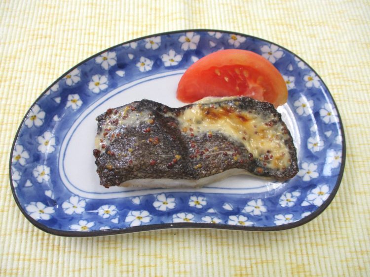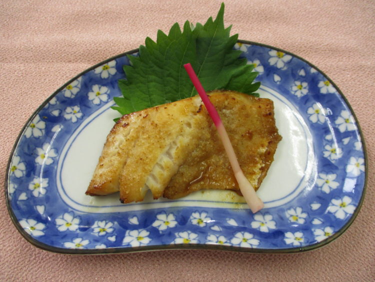 ご飯、里芋と万能ねぎのみそ汁、かれいのマスタードソテー、いんげんと鶏肉の炒め物、