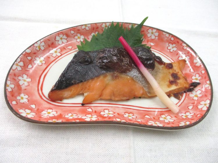 舞茸の天ぷら、梅吹雪漬、ぶどうゼリー