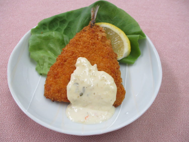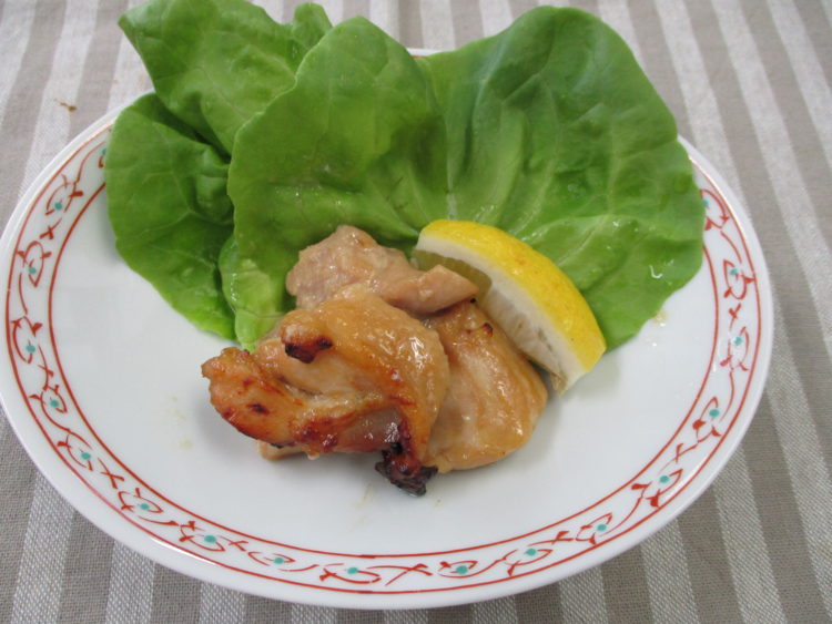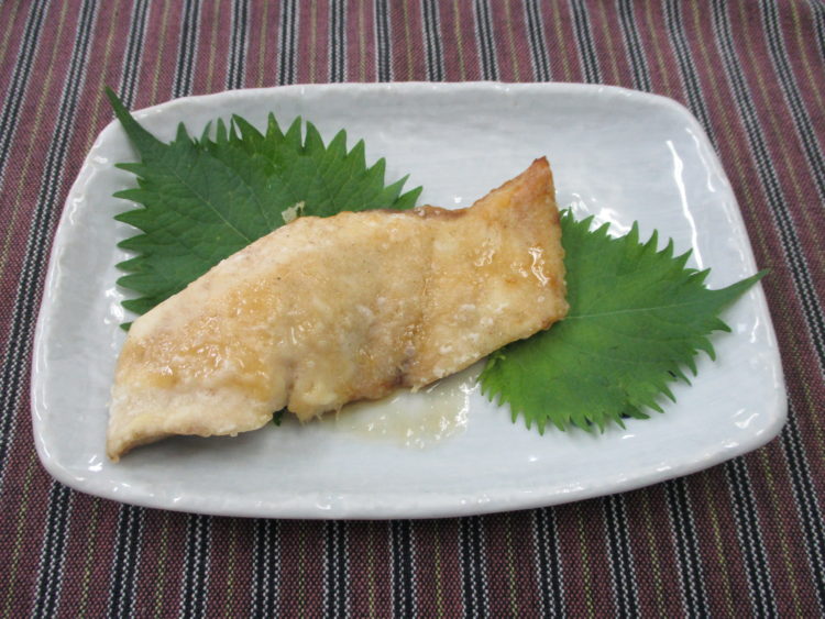 ご飯、白菜と油揚げのみそ汁、シルバーの和風ムニエル、れんこんと鶏肉の炒り煮、