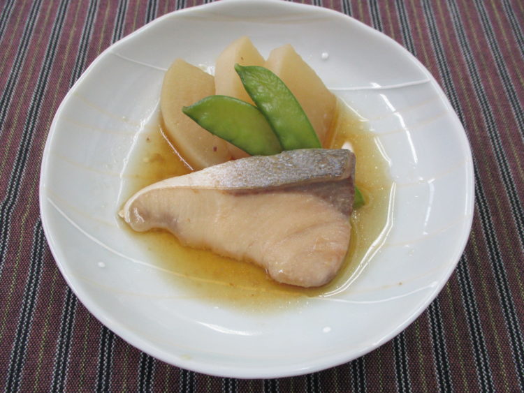 ご飯、里芋と油揚げのみそ汁、鶏肉のサルサソースがけ、白菜とさつま揚げの煮物、