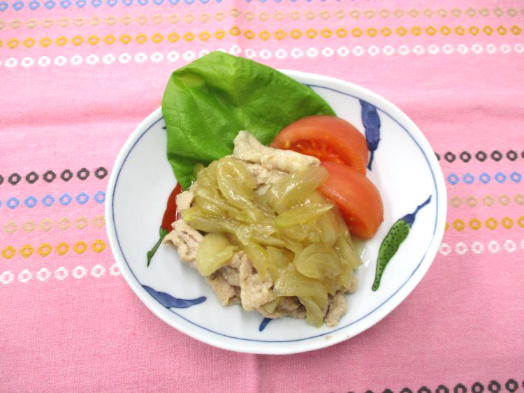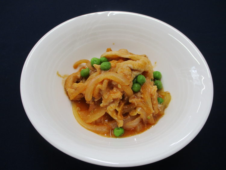 ご飯、大根と油揚げのみそ汁、ポークソテーオニオンソース、