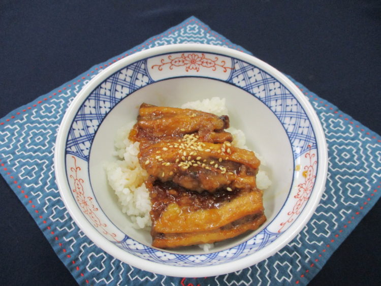 ご飯、舞茸と万能ねぎのみそ汁、鶏肉のサルサソースかけ、ふきとさつま揚げの炒め煮、さつま芋の天ぷら、べったら漬、パイン缶