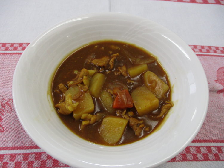 十勝バターのミニパン、あさりと人参のスープ、チキンソテーホワイトソース、いんげんとさつま揚げの炒め物、か...