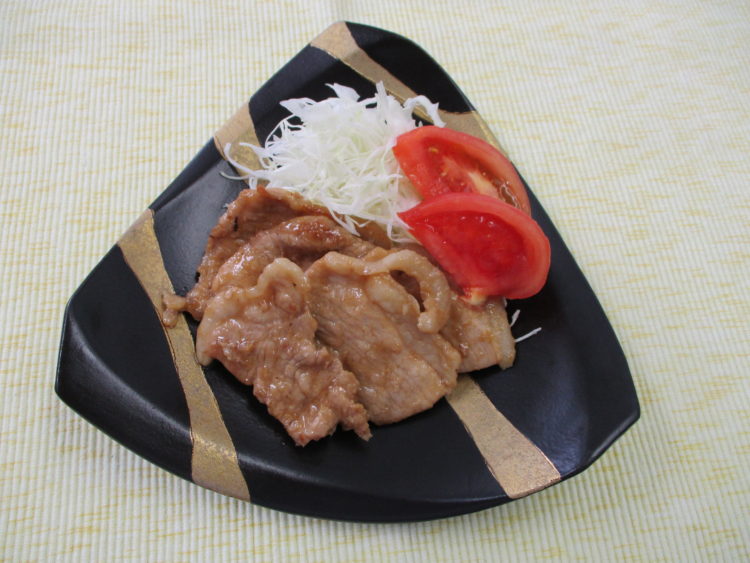ご飯、かぶと油揚げのみそ汁、あじのソテー梅ソース、豚ニラ炒め、卵豆腐のあんかけ、ぶなぴーの甘酢おろし和え、白菜漬
